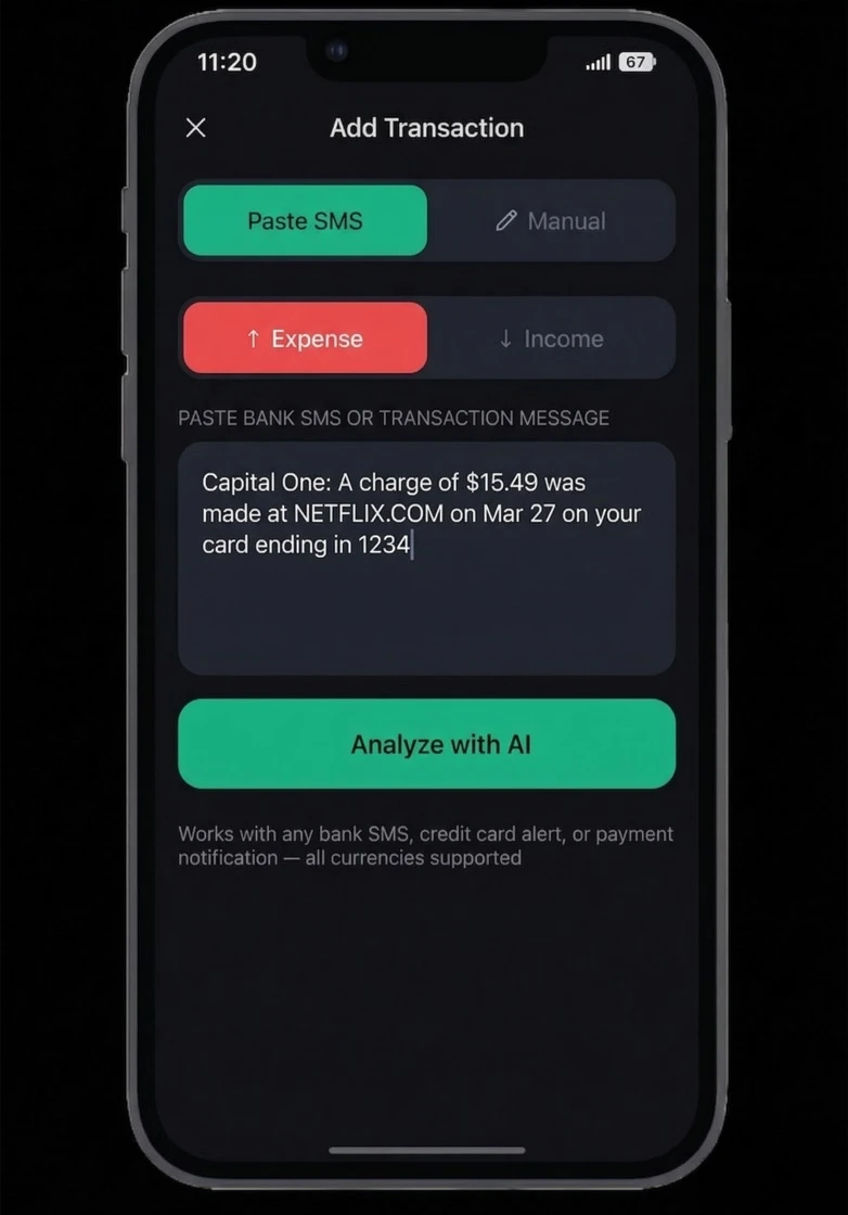 Ginti reads your bank alerts, parses them with AI, and presents clean expense cards. Zero bank login. Zero manual entry.